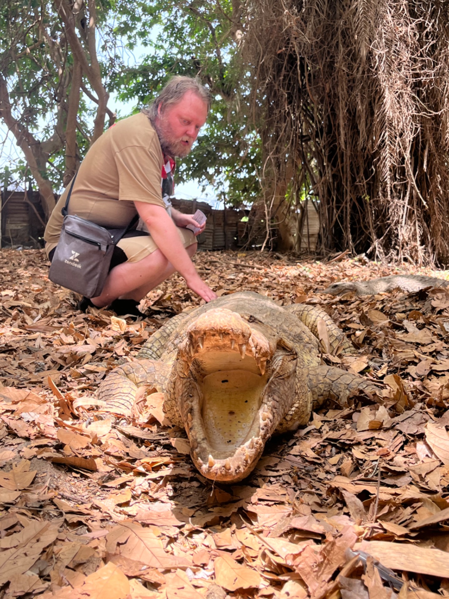 Menimme krokotiilejä katsomaan puistoon, jossa niitä oli noin sata. Ne eivät pahemmin liikkuneet. Ohjeet krokotiilin kanssa toimimiseen olivat useilla kielillä maalattuna seinään. Ohjeet olivat myös suomeksi. Pääpiirteitä ohjeessa oli noudattaa henkilökunnan ohjeita. Henkilökunta kertoi ettemme saisi silittää krokotiilejä pään alueelta. Siihen krokotiilin olivat herkkiä. Saimme paijata niitä pyrstön alueelta. Oli myös yksi krokotiili joka piti suuta auki. Jos sitä,olisi selittänyt kitalaen alueelta, se olisi paikallisen uskomuksen mukaan tuonut onnea. Sitä,en kuitenkaan uskaltanut tehdä vaan tyydyin silittämään krokotiilin pyrstöä.