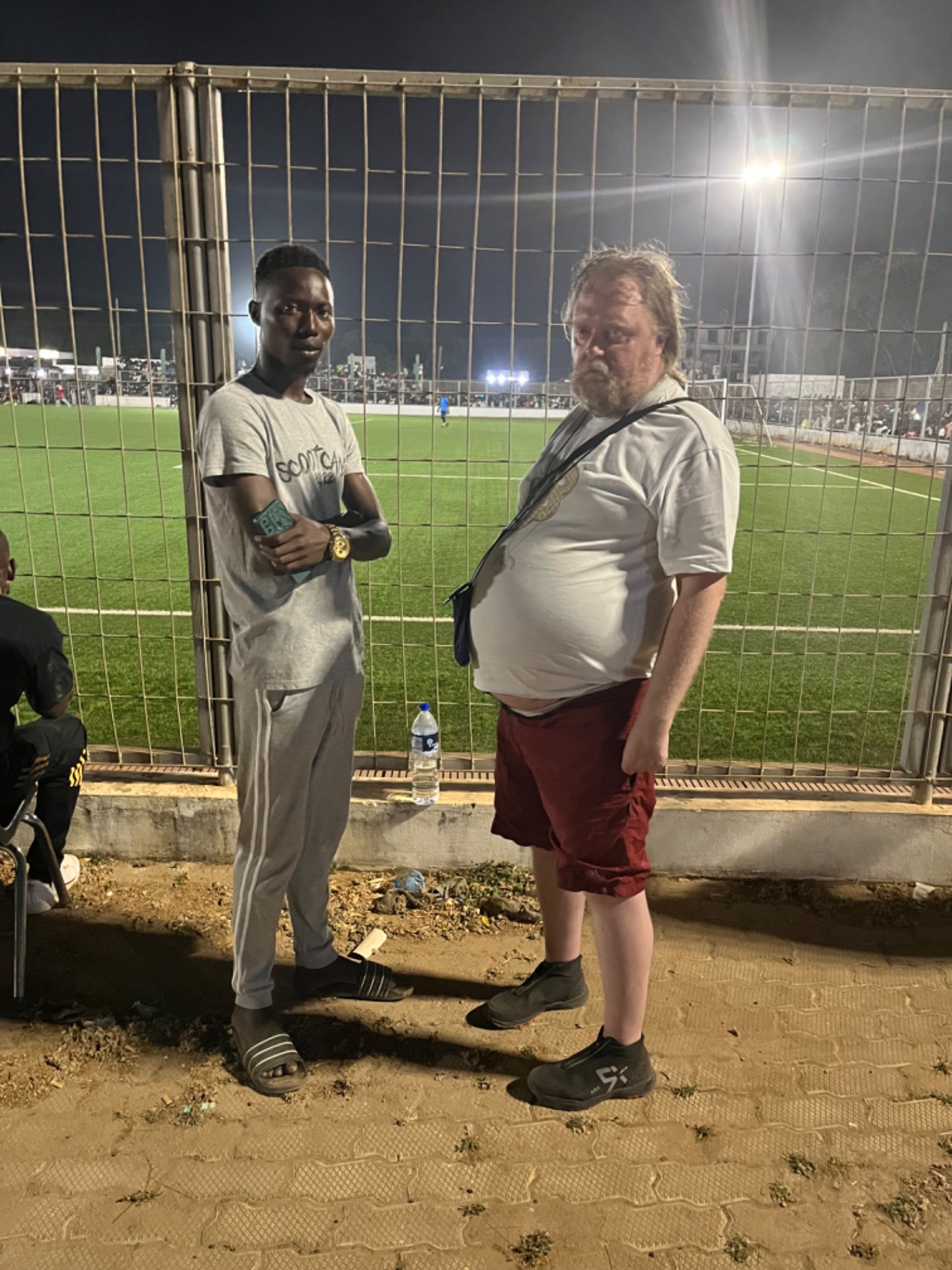 Illalla menimme baariin nimeltä Titanic. 100 GMD oli sisäänpääsyn hinta. Ovella oli riitaa sisäänpääsyn maksusta. Hoidin maksun itselleni ja oppaalleni, josta oli tullut minulle jo tärkeä ystävä. Oppaana työtoverit tarjosivat jonkun verran juotavaa ja meno oli rentoa reggaen tahdissa. Paikassa tuli sähkökatkos. Se oli normaalia, totesi oppaani. Odotimme sen ohimenosta taivasalla olevassa pöydässä. Olin onnellinen.